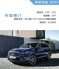 ​   动力方面,英菲尼迪QX60搭载了2.5T和3.5L的发动机,两款发动机均匹配CVT变速箱。