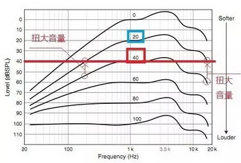 但是对于中音来说已经超过最舒服的红色框40,所以品质不好的音响就容易出现中音吵,失真,听得心里很烦躁。